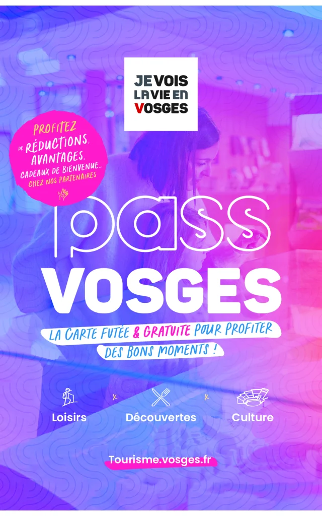 Offre Pass Vosges : 3 € / adulte GRATUIT pour les jeunes de moins de 18 ans GRATUIT pour les jeunes de 18 à 25 ans Billet couplé avec le centre « Visages de Jehanne » à Domremy-la-Pucelle : 4 € (au lieu de 7 €)